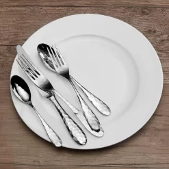 Mikasa French Countryside Flatware flatware has a refined look and a solid weight that make dining a greater pleasure. Quality crafted of heavy gauge 3.5 – 4.0, 18/10 stainless steel this set will stand up to the rigors of everyday use. 45 Piece Flatware Set, service for eight, includes (8) each: dinner fork, salad fork, dinner knife, dinner spoon and teaspoon, PLUS (1) each: tablespoon, pierced tablespoon, cold meat fork, sugar spoon and butter serving knife. Dishwasher safe.