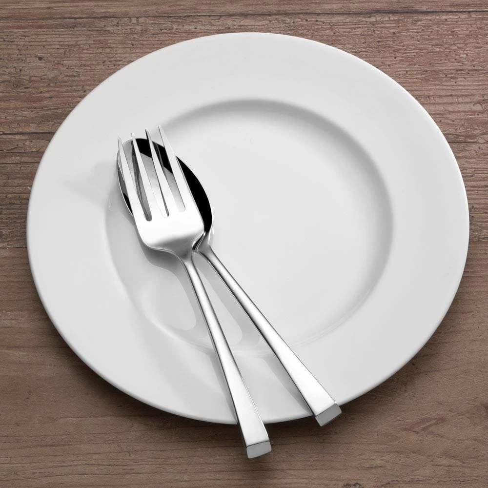 Mikasa Rockford flatware boasts an ultra-modern design in a gently tapered block shape handle. Crafted of superior quality 18/0 stainless steel this set will stand up to the rigors of everyday use. 42 piece set, service for eight, includes (8) each: dinner fork, salad fork, dinner knife, dinner spoon and teaspoon, plus a tablespoon and a cold meat fork. Dishwasher safe.